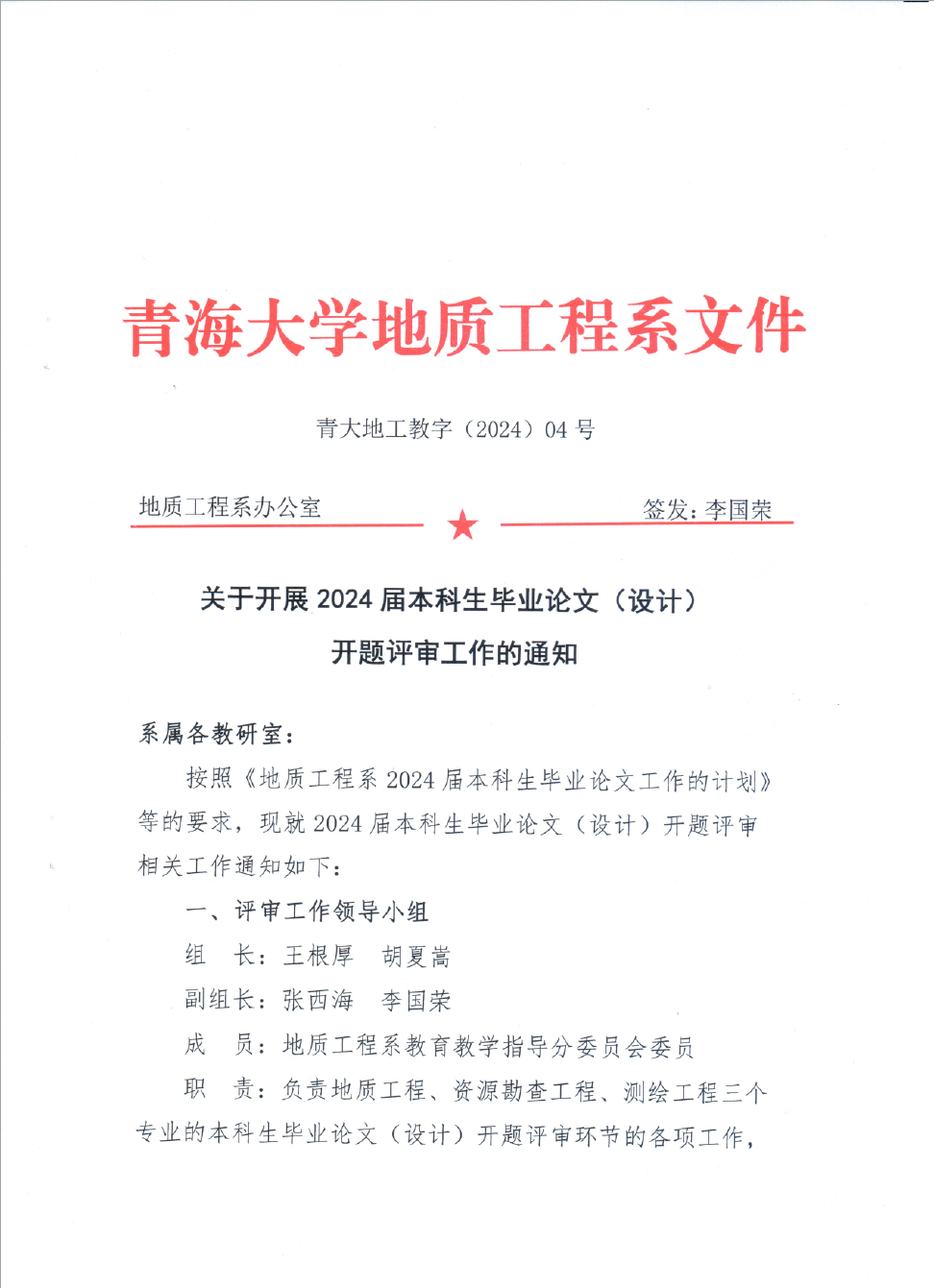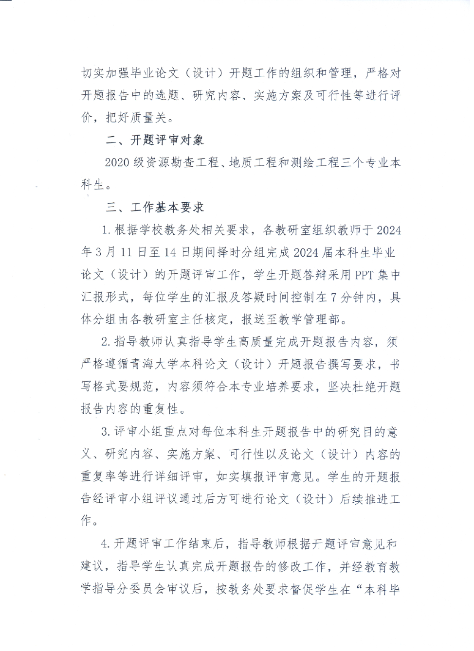 关于开展2024届本科生毕业论文(设计)开题评审工作的通知