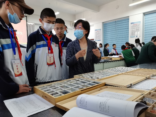 最后西宁市第一中学教育集团师生们前往地质工程系实验室参观了岩石、矿物和化石标本,地质工程系朱海丽教授、李玮副教授和周淑敏博士为学生们进行了认真细致的讲解,并解答了学生提出的诸多科学问题学生们近距离接触到了常见的岩石、矿物和化石标本,通过讲解、参观交流等,深刻了解到了地球岩石圈物质组成与特点、地球科学的内涵及其在国民经济发展中的重要地位。活动中西宁市第一中学教育集团中小学生们表现出了极高的热情和兴趣,活动到了师生们的一致好评。